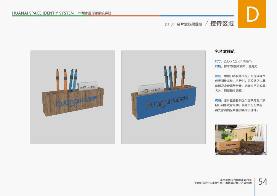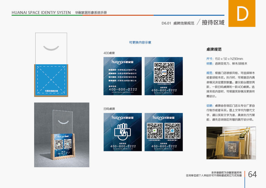 本項目的設計宗旨是在華耐家居所經營的品牌店當中,很自然的方式展現“華耐家居”的品牌形象,讓廣大消費者享受產品服務的時候,對“華耐家居”有更深刻的了解。所以我們利用品牌店當中的一切與消費者近距離接觸的區域或者物料,進行“華耐家居”的品牌輸出展現,既不影響店鋪整體形象,也表達出了公司實力。